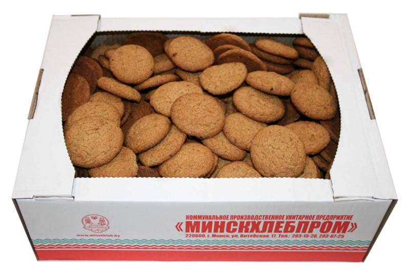 Энергетычная каштоўнасць: 450Апісанне прадуктуМука пшанічная першага гатунку, мёд цукровы бурштынавы (цукар,рэгулятар кіслотнасці лiмонная кіслата,натрый двухвуглякіслы, араматызатар "Мёд"), маргарын ( алей раслінны рафінаваны дэзадараваны,алей раслінны мадыфікаваны рафінаваны дэзадараваны,вада,соль харчовая ёдаваная,сыроватка сухая,цукар,эмульгатар: мона- і дiглiцэрыды тлустых кіслот,кансервант бензанат натрыю, фарбавальнік: бэта-каратын, араматызатар ідэнтычны натуральнаму "Масла СМЕТАНКОВАЕ"), цукар,шматкі аўсяныя, прадукты яечныя, разрыхляльнік-натрый двухвуглякіслы; соль харчовая павараная ёдаваная.Умовы захоўванняЗахоўваць пры тэмпературы ад 10°С да 26°С і адноснай вільготнасці паветра не больш 80 %