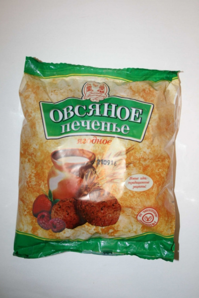 Энергетычная каштоўнасць: 419Апісанне прадуктуцукар, мука пшанічная другога гатунку, маргарын (алей раслiнны, вада, соль ёдаваная, малако сухое абястлушчанае, цукар, эмульгатары: мона-і дiглiцэрыды тлустых кіслот, лецыцін, кансервант – бензаат натрыю, фарбавальнік- ?-каратын, араматызатар «Масла СМЕТАНКОВАЕ»), мука аўсяная, Напаўняльнік «Вішня» (цукар, вада, патака крухмальная, пюре из яблок и вишни, сок вишневый, загушчальнікi: цытрусавая абалоніна и пекцін, рэгулятары кіслотнасці: Е330, Е331iii, Е333, фарбавальнікі: Е120, Е163ii, кансервант Е202), соль харчовая ёдаваная, разрыхляльнік- натрый двухвуглякіслы, араматызатар- ванабон, вада пітная.Умовы захоўванняЗахоўваць пры тэмпературы ад 10 °С да 26 °С і адноснай вільготнасці паветра не больш 80 %.