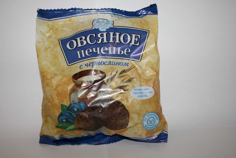 Энергетычная каштоўнасць: 413Апісанне прадуктуцукар, мука пшанічная першага гатунку, маргарын (масла гiдрагенiзiраваныя і натуральны раслінны алей, вада, соль харчовая ёдаваная, сыроватка сухая, цукар, эмульгатар- мона-і дiглiцэрыды тлустых кіслот, кансервант – бензаат натрыю, фарбавальнік -?- каратын, араматызатар «Масла СМЕТАНКОВАЕ»), мука аўсяная, чарнасліў, разрыхляльнік - натрый двухвуглякіслы, соль харчовая ёдаваная, араматызатар - ванабон, вада пітная.Умовы захоўванняЗахоўваць пры тэмпературы ад 10 °С да 26 °С і адноснай вільготнасці паветра не больш 80 %.